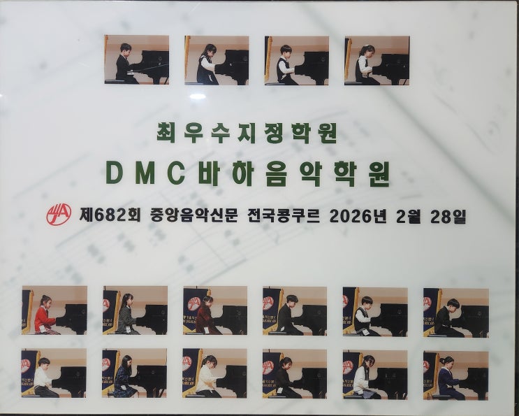 중앙음악신문사콩쿨 안녕하세요! DMC바하음악학원입니다.^^ 벌써 4월이 되어 꽃이 피고, 새싹이 자라는 봄에 이르렀습니다! 2026년 봄 DMC바하음악학원은 밝고 활기찬 꽃 같은 아이들이 열심히 준비한 만큼 좋은 소식을 들려주어 선생님들도 아이들도 행복한 4월을 지내고 있습니다~^^ 아이들이 자신감과 성취감을 느낄 수 있도록 의미 있는 자리를 만들어주려 항상 준비하고 노력하는 DMC바하음악학원입니다!^^ 아이들이 만들어낸 멋진 순간의 소식을 공유해 드립니다~! 아이들의 멋진 모습을 공유할 수 있도록 허락해 주셔서 감사합니다! ^^ <img src="https://blogthumb.pstatic.net/MjAyNjA0MTdfMjM0/MDAxNzc2MzYyMTAwNjc1.w5TTyvHLWsHSMJrr9msEEQqZ99LPfPjD_F0ASeZkp6Eg.lMo3BJg5IsgmJyiwv1n3wOU74RnmKdBLLonZtf9x2HAg.JPEG/31.jpeg?type=s3" />