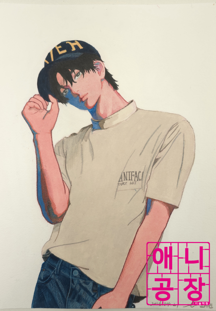 안녕하세요, 애니공장입니다! 오락가락하는 4월 날씨~ 일교차로 감기걸리지 않고 조심하고 계신가요~? 지난번엔 풍경화 위주로 보여드렸으니 오늘은 인물 일러스트 위주로 가져와봤어요~! 멋진 작품들로 엄선했으니 집중해서 봐주세요! 좋아하는 연예인을 그리신걸까요~? 그림자를 진한 푸른색으로 넣어 화보 같은 느낌도 드네요! 이 그림은 불투명 수채화로 그리셨는데, 색을 얹듯이 채색하다보니 물자국이 남지 않아 초심자분들에게 추천드려요! 이 일러스트는 "무언가를 발견하고 뛰어가는 A" 라는 주제로 그리셨는데요! 등교길에 친구를 발견한것같죠? 수채화에 마카, 색연필등 다양한 도구들로 그리셨어요~ 어디에 뭐가 쓰였는지....... <img src="https://blogthumb.pstatic.net/MjAyNjA0MjNfMjU0/MDAxNzc2OTMwMjA0MTUw.dNBHtggh9ZG4c2CE4SF82nYn6TJn9uCUUSsHFMIfioAg.qAnxoy-bnhSRFoz3qUmi08d0hdQfaOrjOVzBAeVj-Q4g.PNG/900_export202604231612537220.png?type=s3" />