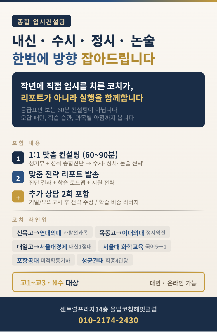내신·수시·정시·논술, 한 번에 방향 잡아드립니다 (목동 입시컨설팅)
