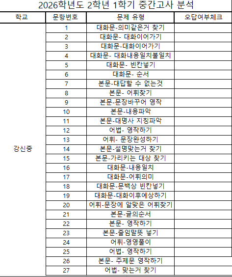 2026 1학기 중간고사 강서고1 시험 경향 분석