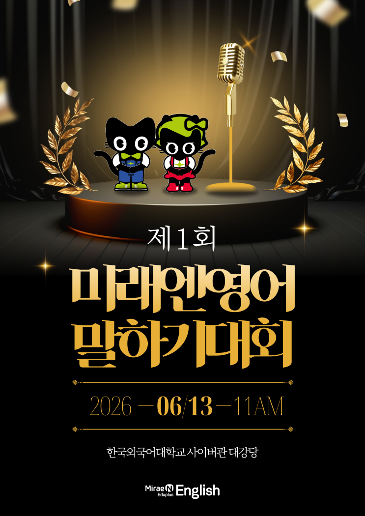 안녕하세요, 미래엔영어입니다. 미래엔영어에서 2026년 제1회 미래엔영어 말하기대회를 개최합니다! 이번 대회는 미국 교과서 어휘로 구성된 비문학 지문이 수록되어 있는 미래엔영어 대표 다독 교재 ‘Reading Town’을 기반으로 진행됩니다. 학생들은 교재를 통해 학습한 내용을 영어로 이해하고, 자신의 생각을 대중들에게 논리적으로 전달하는 경험을 쌓을 수 있습니다. 단순한 학습을 넘어, 영어로 생각을 표현하고 자신감을 쌓는 특별한 경험이 될 이번 대회에 많은 관심과 참여 부탁드립니다! ■ 대회 안내 ■ [ 참가 대상 ] 미래엔영어 전국 가맹점 재원생 [ 참가 조건 ] [ 대회 일시 및 장소 ] 2026년 6월 13일 토요일 오전 11시 ~ 오후....... <img src="https://blogthumb.pstatic.net/MjAyNjAzMDVfMTI0/MDAxNzcyNzIyNzAwMjY3.KD9RJxnDq0tEQO3ybakdUURAI5fhljRpyqSZY4VQjisg.h1FP1H2t8q87P7OTf0eCfPTSSbNVPKs1Q6kbB4HjIaog.PNG/%C1%A6%B8%F1%C0%BB_%C0%D4%B7%C2%C7%D8%C1%D6%BC%BC%BF%E4..png?type=s3" />