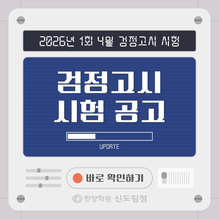 [한양학원 신도림점] 2026년 제1회 4월 검정고시 확정 공고 (검정고시 공고일, 접수일, 시험일, 합격자발표 등)