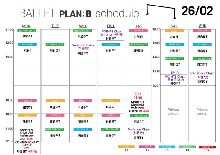발레플랜비 26년 2월 시간표
