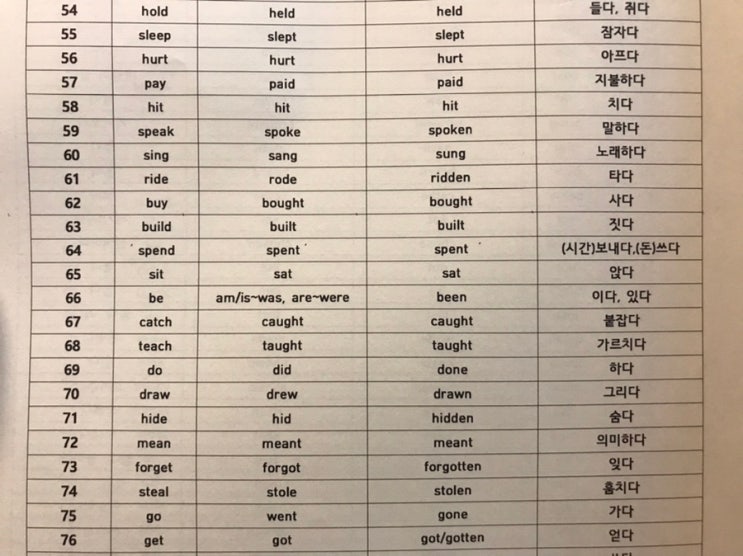 예비중등 예비고등 친구들 배치고사 준비로 기본적인 내용 점검 중인데요! 진짜 기본적이어엇 영어의 구구단 같은! 불규칙동사표 시험 기간 전에 꼭 확인 정기적으로 할 필요가 있습니다! 보통 어휘나 긴 글 읽기도 중요한데요. 많이 보는 자극만 강조할 것이 아니라! 내가 자신있게 아웃풋을 내려면 많이 소리내어 읽고 쓰고! 제일 중요한 “피드백”까지 받아야 완벽해집니다!!! 불규칙동사표 불규칙동사표는 어느 난이도로 몇 개의 동사를 표로 만드느냐가 다양해서 영어책이나 리딩 지문에서 나올 때마다 단어로 암기를 매일매일 하다가 초등 5학년 쯤 되면 초등영문법 “일반동사 과거” 규칙 배우다가 불규칙으로 암기 30개쯤 부터 시작해....... <img src="https://blogthumb.pstatic.net/MjAyNjAyMDhfMTUw/MDAxNzcwNTI2NjYwMjEx.yAaS0s9YEVrQ92kAAt9tkRgS3-erwTzoektaIzk0JbYg.7uXHGwBwirg4VblMsxK1qX6khOPAgQTJjKYhvjLm2ZQg.JPEG/IMG%A3%DF8127.jpg?type=s3" />