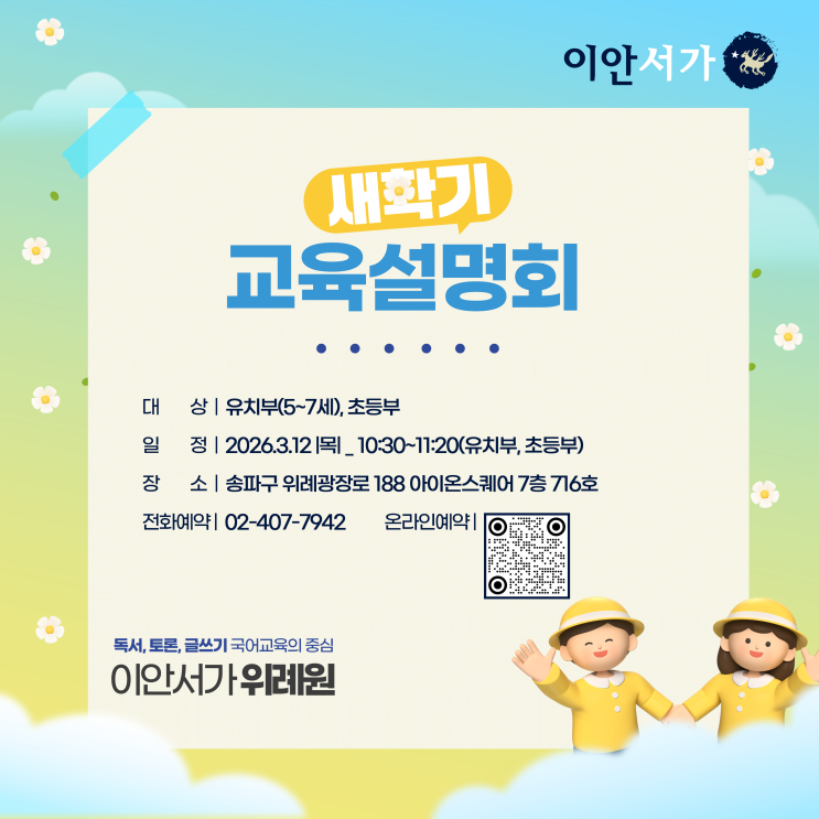 이안서가 위례원 신학기 설명회 안내