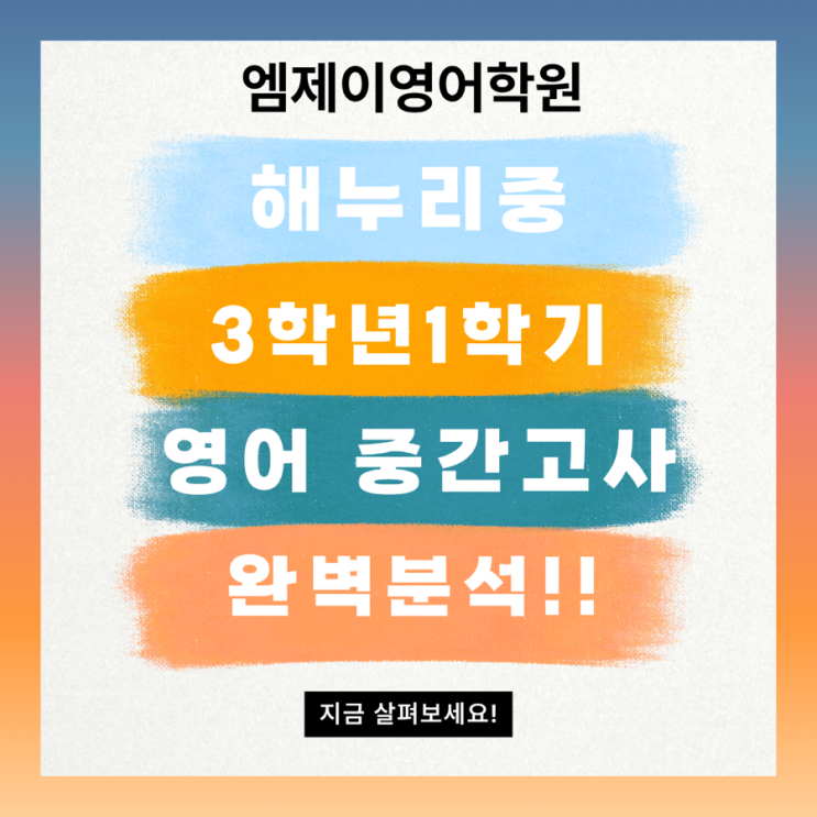 [해누리중 3학년 영어] 1학기 중간고사 완벽 분석 및 적중 후기! (feat. 엠제이영어학원)
