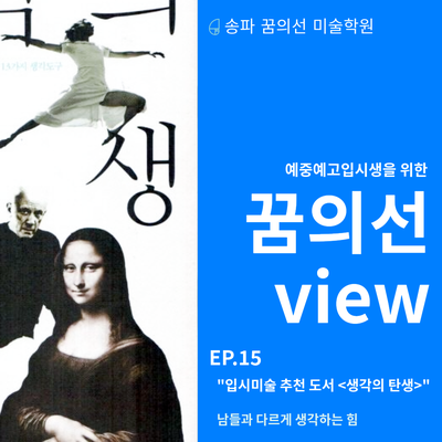 예중입시, 예고입시를 준비하면서 “실기 연습만 열심히 하면 되는 거 아니야?”라고 생각하신 적 있으신가요? 물론 실기 실력은 중요합니다. 하지만 예중·예고 입시에서 상위권에 드는 학생들을 오래 지켜보면, 하나의 공통점이 보입니다. 그림을 잘 그리는 것을 넘어, ‘남들과 다르게 보고, 다르게 생각하는 힘’을 가지고 있다는 것입니다. 오늘은 그 ‘다르게 생각하는 힘’을 어떻게 키울 수 있는지, 한 권의 책을 통해 이야기해 보려고 합니다. 《생각의 탄생》, 어떤 책인가요? 《생각의 탄생》은 미시간대학교의 로버트 루트번스타인 교수 부부가 쓴 책입니다. 아인슈타인, 피카소, 모차르트, 버지니아 울프, 마르셀 뒤샹 등 역사적으로....... <img src="https://blogthumb.pstatic.net/MjAyNjAzMjRfOSAg/MDAxNzc0MzUzMTEyNTA1.8s_JQYJdOjrCFJXx_hRcfWWgKHOcgldVIjHdAWtKHHgg.lMZmlQwmzHy2INBbGRoOwG7mcVMia-YNgPLsoSSTMX4g.PNG/%BB%FD%B0%A2%C0%C7%C5%BA%BB%FD_%C3%A5%C7%A5%C1%F6_%BF%B9%C1%DF%C0%D4%BD%C3%C3%DF%C3%B5.png?type=s3" />