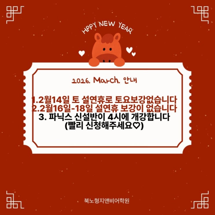 [북노형지앤비어학원] 설 휴가& 4시파닉스 3월개강