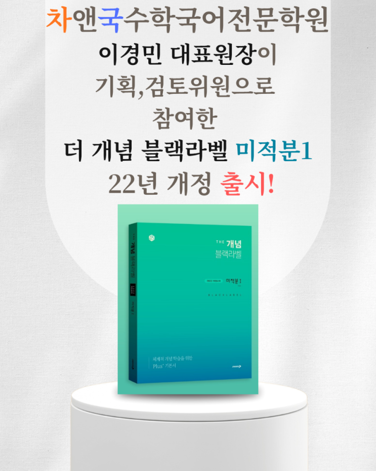 이경민 대표원장님이 기획,검토위원으로 참여한 더 개념 블랙라벨 미적분1 22년 개정판이 출시 되었습니다.