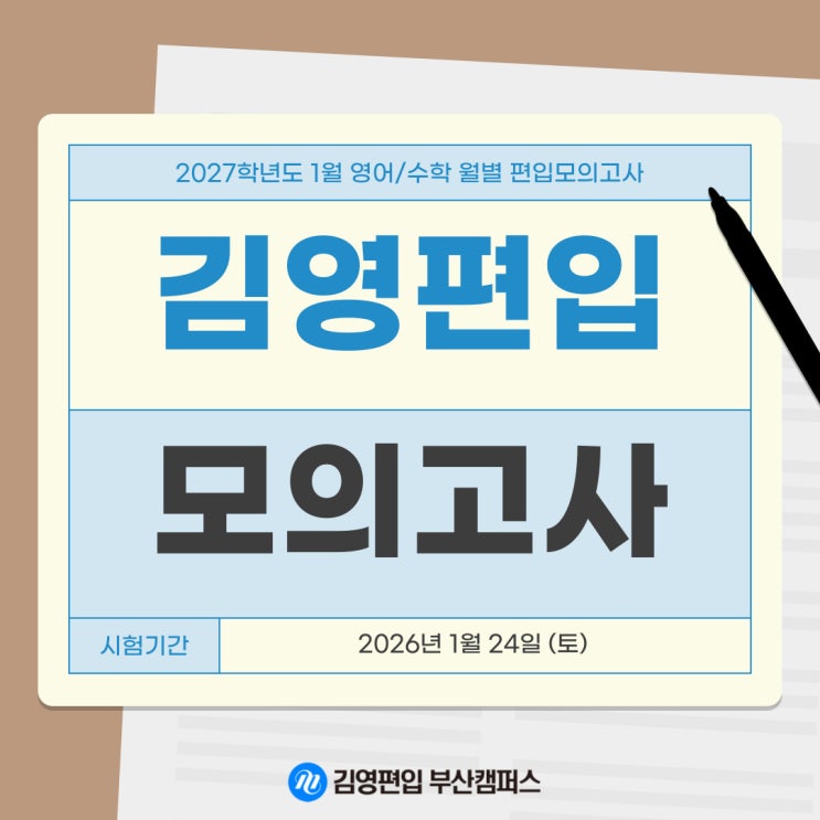 안녕하세요! 부산 지역 편입 합격의 중심, 김영편입 부산캠퍼스입니다. 2027학년도 편입 성공을 꿈꾸는 수험생 여러분을 위해, 오늘은 합격의 지표가 되는 김영편입 월별 모의고사의 모든 것을 상세히 안내해 드립니다. ✅ 부산 편입 모의고사 주요 정보 ✏️ 응시 대상: 2027 편입 준비생 누구나 시험 과목: 편입영어, 편입수학 (수준별/대학별 맞춤형) 분석 혜택: 성적 리포트 + 1:1 맞춤 학습 컨설팅 누적 응시 90만 명! 부산 편입학원이 추천하는 압도적 객관성 편입 시험은 정보 싸움이자 나 자신과의 싸움입니다. 부산 편입 수험생들이 김영 모의고사를 반드시 치러야 하는 이유는 바로 객관적인 데이터에 있습니다. 누적 90....... <img src="https://blogthumb.pstatic.net/MjAyNjAxMTlfMjE1/MDAxNzY4ODIwNTM5MzQ1.gNhQR_o-MMw96ZqEVc82y2hcSTooKd5XT0HRu71qEJ0g.avr28pYPH4jAZhOfFJ1PD6tkqimCMWvUUPHjHv7DzR4g.JPEG/001.jpg?type=s3" />
