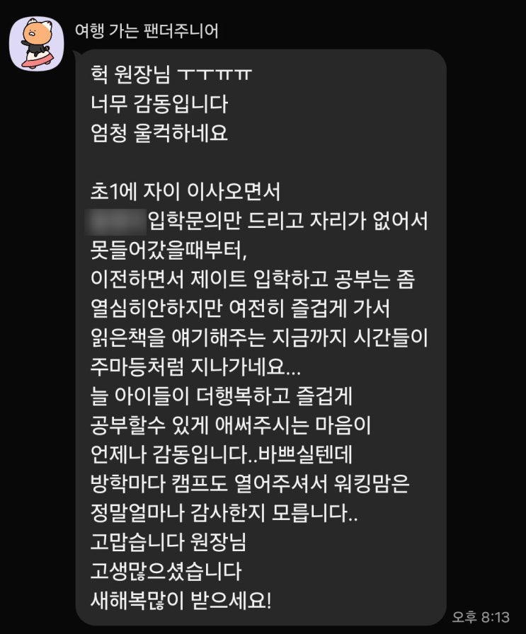 제이트의 방학 시그니처인 <해외캠프대신 리딩캠프>, 어느덧 18번째 진행했습니다. 우리 아이들이 제이트의 <해외캠프 대신 리딩캠프>에 참가해서 10일동안 많이 애썼습니다. 애써준 아이들 고마워요! 캠프 진행 중간에 재원생이 초등졸업이라 졸업선물을 했는데, 어머님께서 문자를 주셨어요. 이 문자를 받으니, 제가 처음 리딩캠프를 시작한 계기가 떠 올랐어요. 제 친구 아이, 제 아이 친구, 그리고 저희 아이까지 셋을 한꺼번에 방학 때 돌봐야했거든요. 아이 셋을 한꺼번에 돌보면서 아이들에게도 도움되고 저에게도 좋은 일은 없을까하고 생각하고 시작했던 리딩캠프였어요. 도움이 필요한 두 어머님의 아이들을 돌보고, 제 아....... <img src="https://blogthumb.pstatic.net/MjAyNjAxMjNfMjYz/MDAxNzY5MTI3NzYxMDU3.0j7VG3yEZRDyP642-NwGL2oBcs287xxx_Y9EbTafV2Yg.v-W0SO2ATF2F3t0hI3r2EThUosg4SSSREyKj1jIkZWYg.JPEG/%C4%B7%C7%C1%B0%FC%B7%C3%B9%AE%C0%DA.jpg?type=s3" />