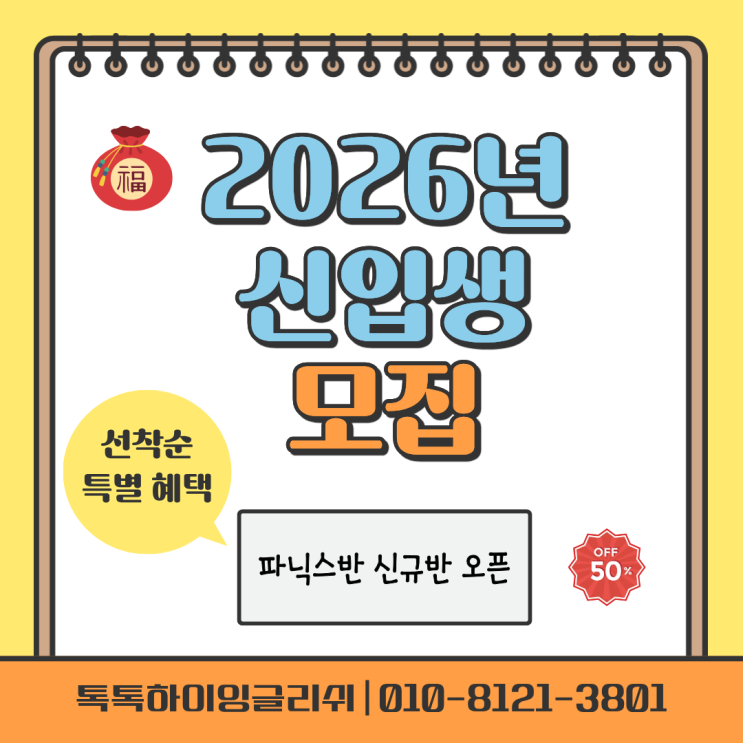 [선착순 50% 혜택, 2026 파닉스반 모집]장전동 영어학원
