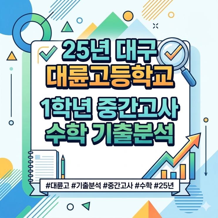 25년 대구 대륜고등학교 1학년 1학기 중간고사 분석 안녕하세요 매쓰플랜 수학학원 범어점입니다. 2025년 대구 대륜고등학교 1학년 1학기 중간고사를 분석해 보려고 합니다. 25년이 9등급제 내신에서 5등급제 내신으로 바뀌는 첫 해라서 학생들도 내신 대비를 하면서 많이 혼란스러웠을테지만 출제자인 학교 선생님들께서도 난이도 조절에 어려움이 있었을 것으로 예상이 됩니다. 우선 각 문항의 출제 단원과 난이도를 살펴보면 아래와 같습니다. 24년까지 9등급제 내신에서의 대륜고 시험 난이도와 비교하였을 때 너무나도 쉬운 시험이 되었습니다. 어렵다고 할 만한 문항(최상 난이도)이 없을 정도로 전반적으로 너무나도 쉬웠고 그나마 마지막....... <img src="https://blogthumb.pstatic.net/MjAyNjAzMDhfNiAg/MDAxNzcyOTcyNzY1MzQy.f3dPUOLxOm9J7uhoyrFoHUdWwZPuBAwJyDEykB0SQlAg.7dfA7z2yFi0WmXxthpF3Sg5UxzfVQgF2h4lcyatZc8Ag.PNG/Gemini_Generated_Image_1bffyj1bffyj1bff.png?type=s3" />