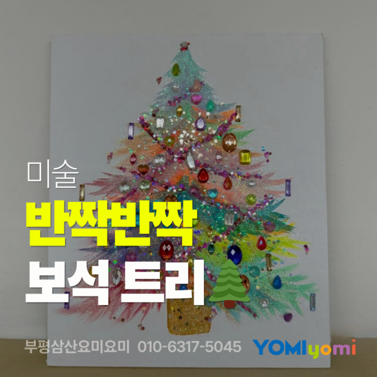 안녕하세요, 요미요미 미술 학원입니다 평소에는 드로잉 중심 수업을 진행하고 있지만, 12월에는 아이들이 계절을 느끼며 더 즐겁게 표현할 수 있도록 크리스마스 특강 수업을 진행했어요. 이번 특강의 주제는 ‘보석 트리’ 붓 터치로 완성하는 반짝이는 크리스마스트리를 그려보았습니다. 요미요미 미술 학원은 무조건적인 ‘재미’만을 목표로 하지 않습니다. 물론 미술은 즐거워야 하지만, 그 안에서 아이 스스로 하나는 꼭 배우고 돌아가는 수업을 중요하게 생각해요! 오늘의 수업 포인트 ① 이번 보석 트리 수업에서는 연필 스케치를 최소화하고 붓 터치로 바로 형태를 잡아보는 방식으로 진행했습니다. 화판(캔버스) 특성상 연....... <img src="https://blogthumb.pstatic.net/MjAyNjAxMTVfMTE3/MDAxNzY4NDc5NjY2OTky.zlNYzzD4l7yvXFSIg2nP4q6PcU57AjcPnB4Gk1P1FE4g.slSmoyC3DfqGlfEALv-gx-iR4zdcx3TZXbTHDjBWNDYg.PNG/900%A3%DF%BA%CE%C6%F2%BB%EF%BB%EA%BF%E4%B9%CC%BF%E4%B9%CC%A3%DF20260115%A3%DF212017%A3%DF0000.png?type=s3" />