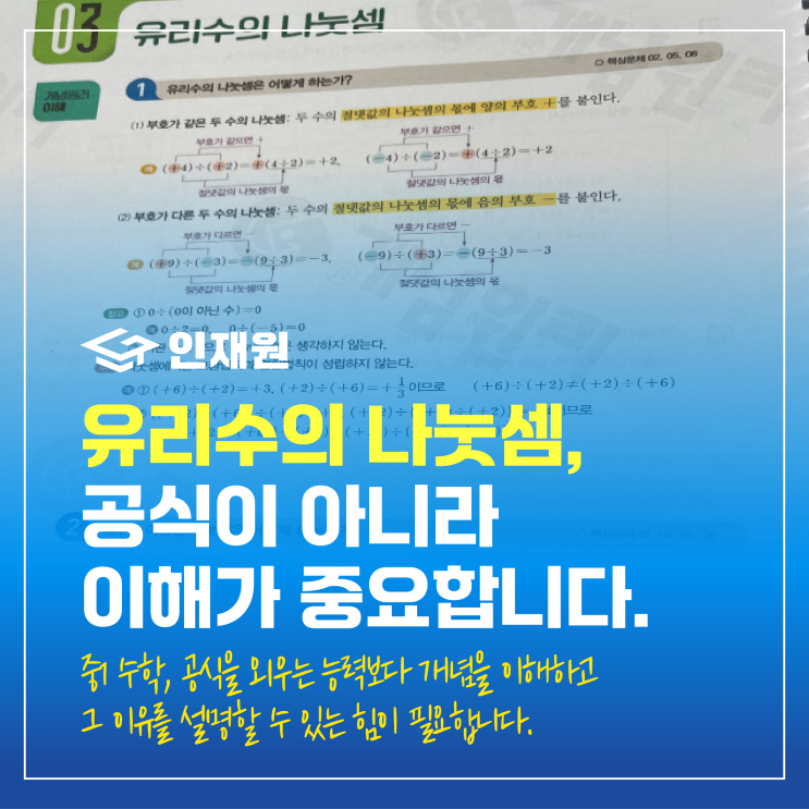 [청라 인재원학원] 청라 중학교 1학년수학, 유리수의 나눗셈, 공식이 아니라 이해가 중요해요.