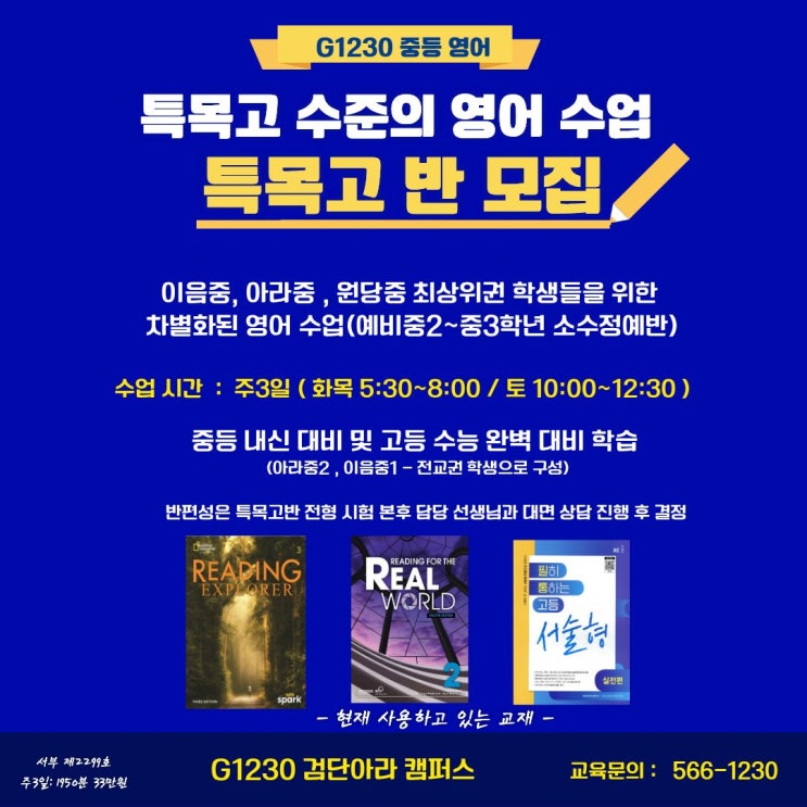 [G1230검단_중등 영어반: 특목고 대비 반 모집]
