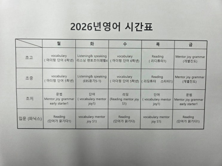 2026년3월1일 영어 수업 커리큘럼 변경 안내