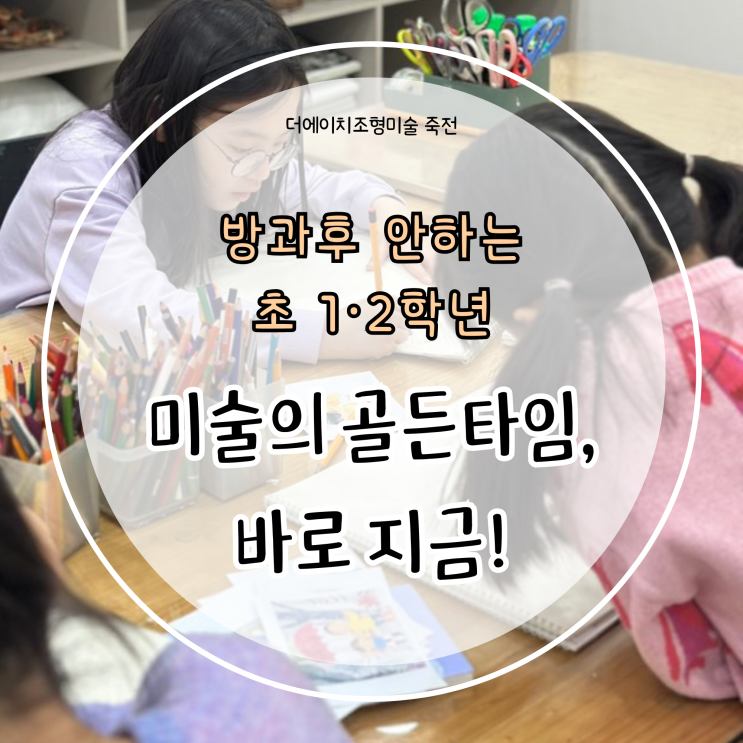 아이 눈높이에서 진짜 미술을 합니다 현명한 엄마들의 선택 안녕하세요. 더에이치조형미술 죽전입니다 :) ⊹₊°✧ ───── ୨ৎ ───── ✧°₊⊹ 저희 아이는 아직 방과 후를 하지 않아요.. 학교 끝나고 시간이 애매해서요.. 초등 1,2학년 학부모님들과 상담을 하다 보면 이런 말씀을 정말 자주 듣습니다. 방과 후를 하지 않으면 하교 후 시간이 비어 있긴 한데 그렇다고 아무 시간에나 학원을 보내기엔 아직은 아이가 어려 보이고요. 그래서 저희는 방과 후를 신청하지 않은 아이들에게 ‘하교 직후 시간’을 가장 안정적인 수업 시간으로 추천드리고 있습니다. 이 시기의 시간 선택은 생각보다 중요합니다. ▼ 더에이치조형미술 죽전 교....... <img src="https://blogthumb.pstatic.net/MjAyNjAzMDJfMTA1/MDAxNzcyNDE4NTQwNzk1.C6d6EO_HyDHPyX04yhkP1JcCIlV8rhw1T7gGMeD4IlYg._zPsgE7JKbs34ttDZ5njM6NKXWTlCAdodjC8XjEIXTkg.PNG/%B1%D6%C0%BB_%B1%F7%B4%C2%B5%A5_%B9%D9%B3%AA%B3%AA%B0%A1_%B3%AA%BF%D4%B4%D9...._%2811%29.png?type=s3" />