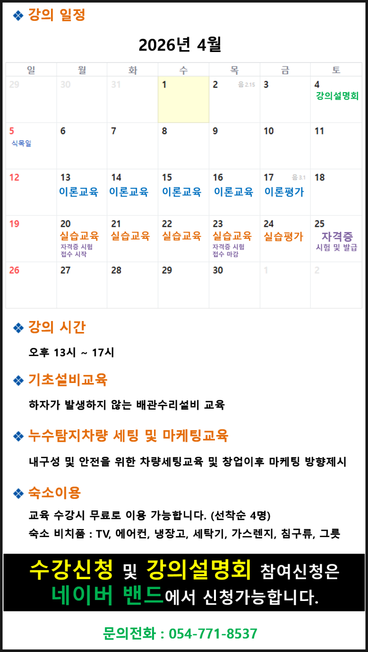 2026 4월 누수탐지사 창업교육 75기 모집중