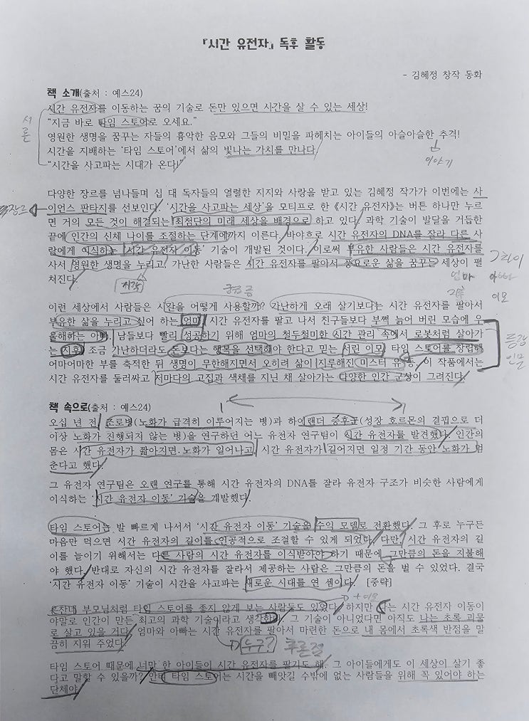 『시간 유전자』 독후 활동 -김혜정 창작 동화