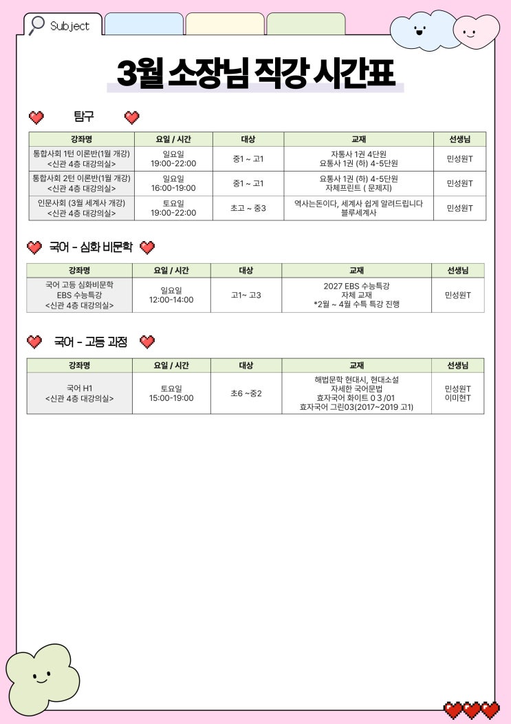 [민성원연구소] 3월 시간표