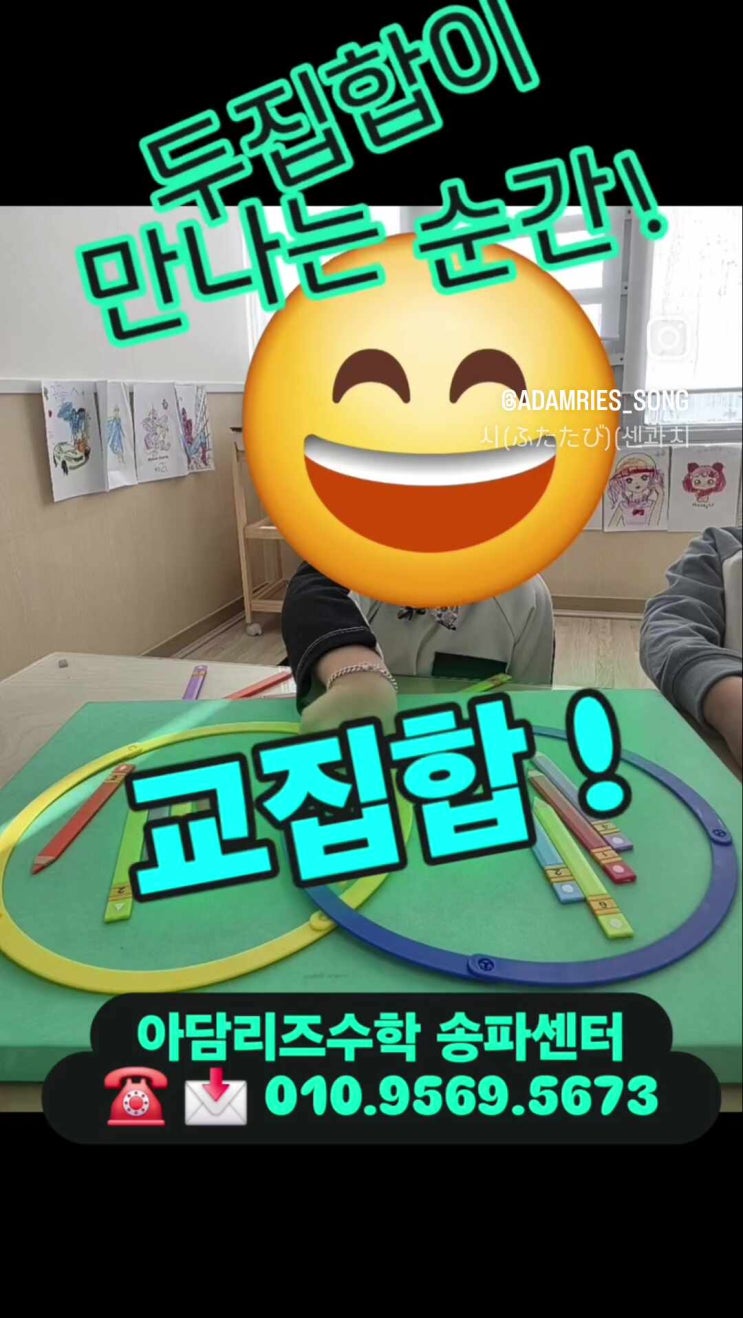 아담리즈수학 분류, 교집합 ! 노란색의 도형들과 삼각형들이 있습니다. 다른 줄 알았던 두 종류가 공통된 속성으로 다시 만날때 이루어지는 사고확장 ! 그것이 수학언어로 표현되는 순간, 아이들은 즐겁습니다 ! 아담리즈수학이 즐거운 이유는 아이로 하여금 정해진 문제 안에서 정형화된 하나의 답만 요구하지 않기때문입니다. 스스로 만들어보고, 해결하면서 이루어지는 수많은 방식의 표현성이 아담리즈수학에는 녹아있지요. 누구나 자신의 생각을 다양한 방식으로 표현하는 것은 즐겁습니다. 아이의 일상에 수학적 사고를 선물하세요 ! 최우수센터 및 우수성장센터 선정 기념 감사 선물증정합니다. 아담리즈수학송파센터 네이버플레이스....... <img src="https://phinf.pstatic.net/image.nmv/blog_2026_03_06_451/yekPNEQg1t_03.jpg?type=f480x480" />