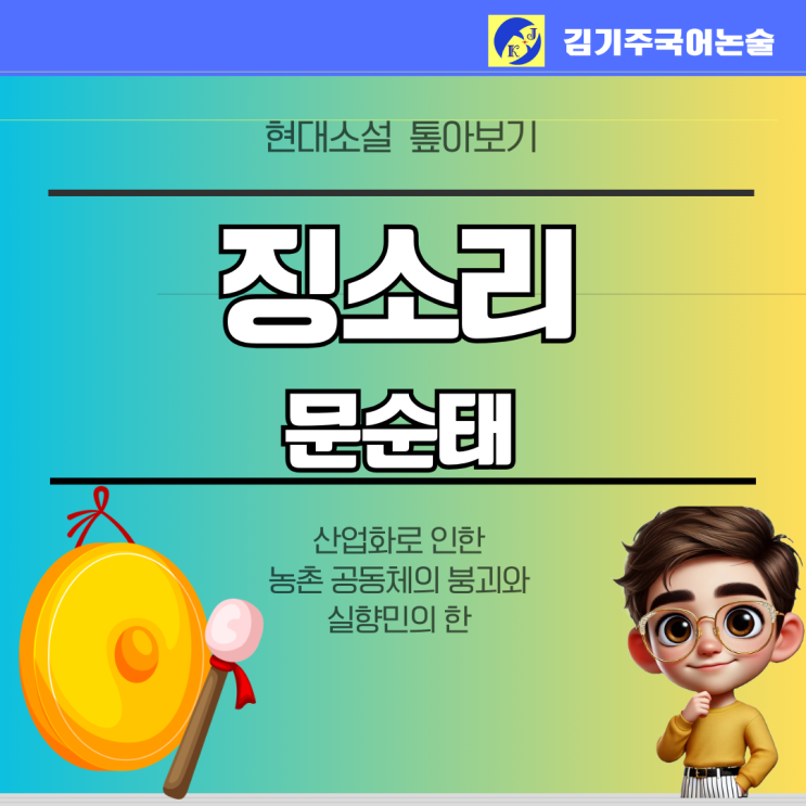 안녕하세요, 김기주 국어 주클래스입니다. 오늘은 1970년대 산업화의 그늘 속에서 고향을 잃은 실향민의 아픔을 형상화한 문순태의 소설 <징 소리>를 함께 분석해 보겠습니다. 2027학년도 수능특강에 수록된 만큼, 작품의 핵심 상징과 사회적 배경을 정확히 파악하는 것이 중요합니다. 작품 개관 이 작품은 댐 건설로 인해 고향이 수몰된 민중들의 삶을 통해 산업화 과정에서 소외된 농촌의 현실을 사실적으로 그려낸 단편 소설입니다. 전체 줄거리 및 핵심 포인트 ◆ 전체 줄거리 칠복은 낚시꾼들을 방해하며 징을 울리다 종종 매를 맞곤 한다. 마을 사람들은 댐 건설로 호수에 잠겨 버린 방울재를 떠나 매운탕 장사로 생계를 이어 가고 있....... <img src="https://blogthumb.pstatic.net/MjAyNjAyMjdfMjg5/MDAxNzcyMjAwMTk0NzUx.gF64DD7lQxW-DxSponr-h0Pu2BqjMIZ9to8AgIaj1fYg.oeE_mxd4CnuliUqkdeAs38KLOt_EK3xDiQX1vu8LUd8g.PNG/%C6%C4%B6%F5%BB%F6%B0%FA_%C8%B8%BB%F6_%BD%C9%C7%C3%C7%CF%B0%ED_%B1%F2%B2%FB%C7%D1_%BA%F1%C1%EE%B4%CF%BD%BA_%C4%AB%B5%E5%B4%BA%BD%BA_%C0%DB%BC%BA_%BF%E4%B7%C9_%BE%C8%B3%BB_%B5%F0%C0%DA%C0%CE_%C5%DB%C7%C3%B8%B4_%C0%CE%BD%BA%C5%B8%B1%D7%B7%A5_%C6%F7%BD%BA%C6%AE%C0%C7_%BB%E7%BA%BB_%2824%29.png?type=s3" />