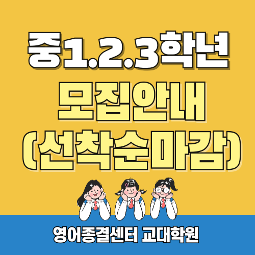 거제동 영어학원, 중학생 모집안내 (1.2.3학년, 선착순마감)