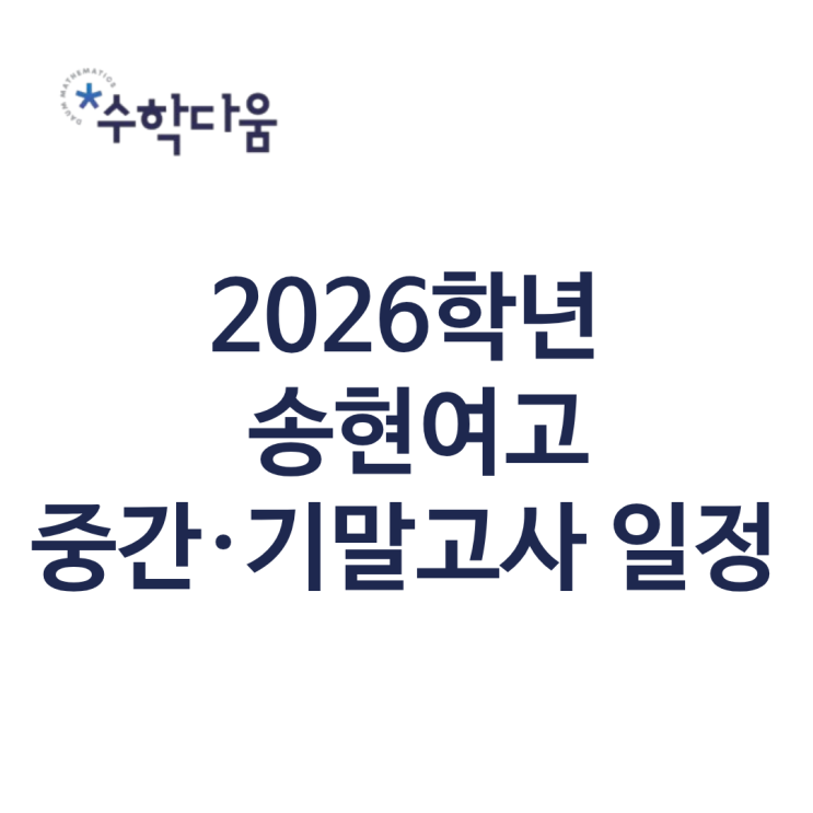 [수학다움 학원] 월성동 수학 학원 "2026학년도 송현여고 중간,기말고사 일정 안내"