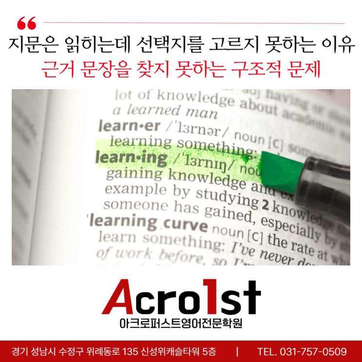 위례 영어학원 아크로퍼스트영어학원 영어 지문은 읽히는데 선택지를 고르지 못하는 이유 근거 문장을 찾지 못하는 구조적 문제