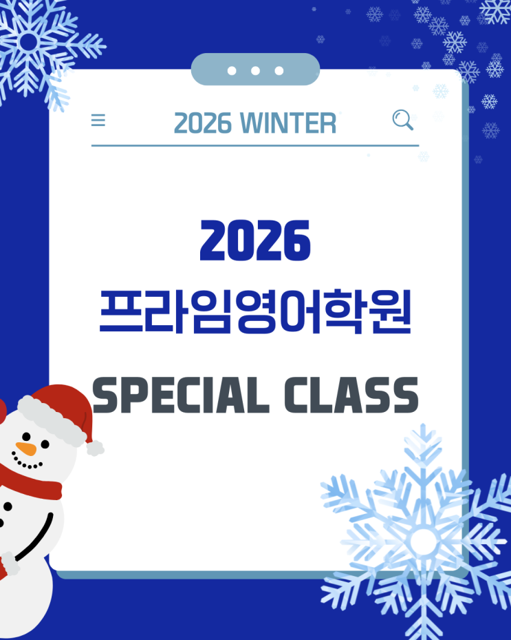 대치동 수업 그대로! 위례에서! 안녕하세요 프라임영어입니다. 2026년도 1,2월 겨울방학 5주 (5회) SPECIAL CLASS를 공개합니다. 프라임영어학원은 방학기간 정규수업 시수가 늘어나지 않습니다. 학기중과 같은 수업 시수이지만, 더 꼼꼼한 관리에 시간을 투자하려고 합니다. 일부 학부모님들의 방학만을 위한 추가 특강 문의가 있어, 금요일만 진행되는 두 수업을 공개합니다! Universal 영어말하기 대회 작년 프라임에서 처음 대회를 준비하고 전원 고득점의 수상을 한 영광! 아래 블로그에 스피치 수업의 자세한 수업 진행 방법이 있으니 참고해 주세요:) < 대상 : 예비초4-예비중1 선착순 12명 > https://blog.naver.com/prime_english....... <img src="https://blogthumb.pstatic.net/MjAyNTEyMDVfMjQy/MDAxNzY0OTA2OTc2OTIw.1QPGwX5IyLou5oV1lwVnoEM2pbKBso9kqb9Hc49yAp4g.ZrKHC6ZzwybtC4RjrWUdM3Vdc8b8TrhokaKU3RvWysIg.PNG/2026_prime_english_%281%29.png?type=s3" />