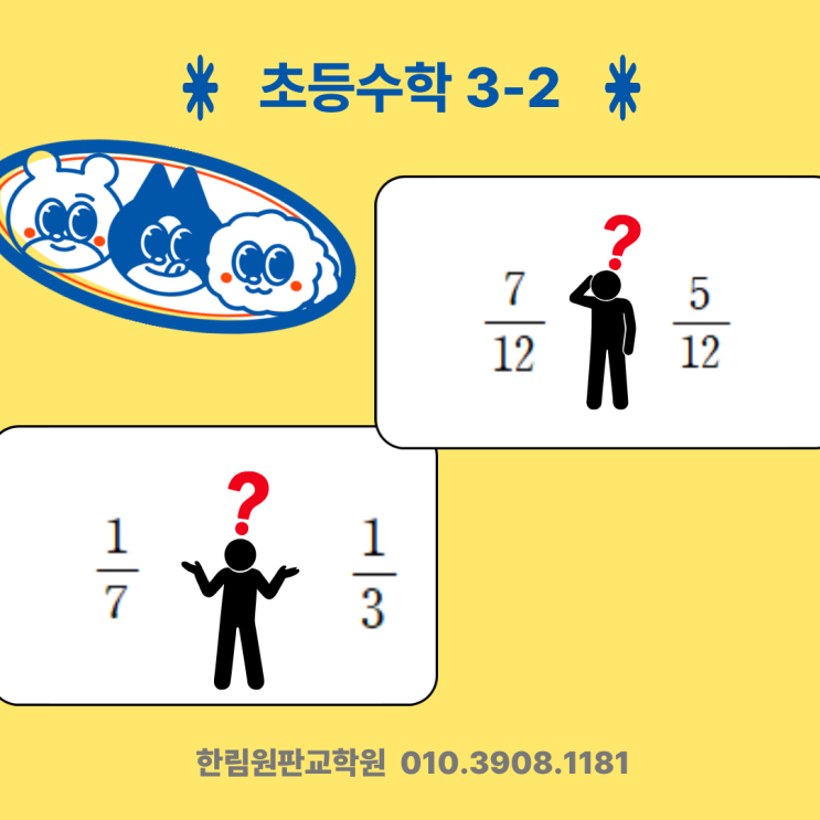 안녕하세요. 판교 백현동 초등수학강자 <한림원> 입니다. [한림원 초등수학 시리즈 ②] 분수의 크기 비교 -- ‘분모와 분자의 관계’ 이해하기~~~ ♥ 3학년 2학기에서 아이들은 단위분수를 통해 ‘전체를 어떻게 나누는가’를 처음 경험합니다. 그다음 단계가 바로 분수의 크기를 비교하는 활동인데요, 이 과정에서 아이들은 계산보다 더 중요한 사고력을 익히게 됩니다. ‘조각의 크기(분모)’와 ‘가진 조각의 개수(분자)’를 분리해서 생각하는 힘입니다. 이 개념이 제대로 잡혀야 4학년의 통분, 5·6학년의 분수 연산까지 자연스럽게 연결될 수 있습니다. ■ 분수의 크기 비교, 유형별로 이해해 볼까요? ① 분모가 같을 때 — 조각의 크....... <img src="https://blogthumb.pstatic.net/MjAyNTExMTVfMjE1/MDAxNzYzMTg5NDQzMzQ1.lYNRq-cdDFToEgSJgzhQJptEcgNHafst2Zc2yKrWIJkg.7JEaEb79-guhjh9Iqrij1rkONJKxEtmLsUydcdeGoAAg.PNG/%C1%A6%B8%F1%C0%BB_%C0%D4%B7%C2%C7%D8%C1%D6%BC%BC%BF%E4..png?type=s3" />