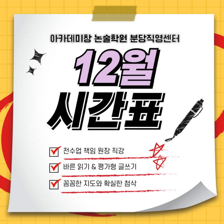 2025년 12월 수업 시간표 [분당 수내동 아카데미창 논술학원]