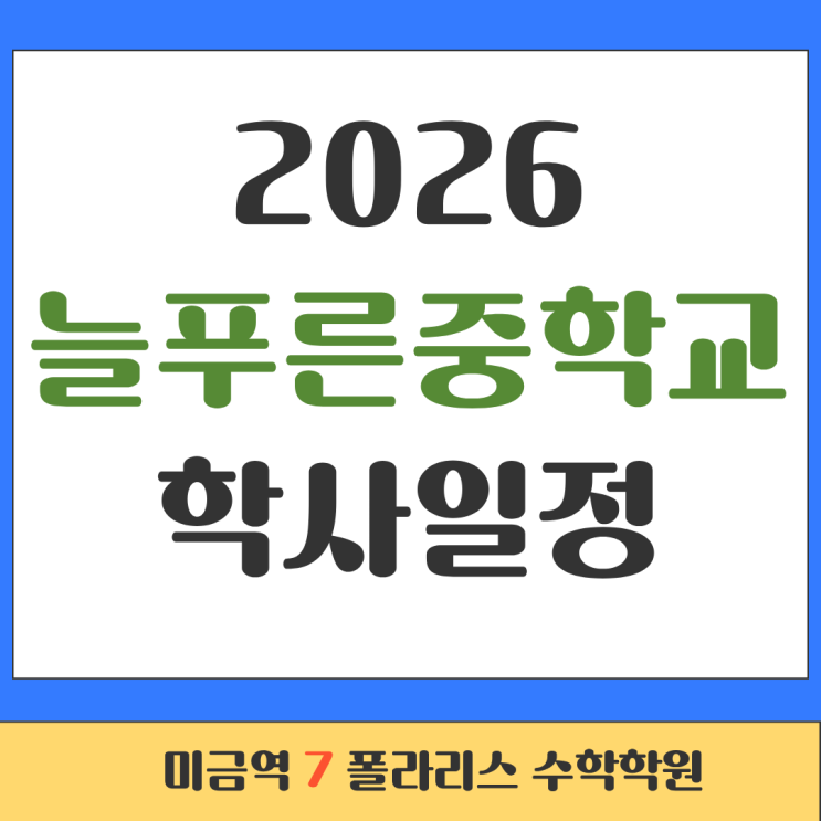 [미금역 수학학원]2026 늘푸른중 학사일정