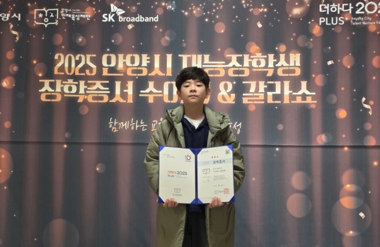 석수동(충훈부) 석수초5학년에 재학중인 어린음악대석수하늘소리원 학생 피아노부문 재능장학생 장학증서 시상식 참여하여 빛난 하루 스토리입니다^^ 피아노학원을 한번도 쉬지않고 매일매일 열심히 연습하고 레슨받은 노력의 결과물은 효도입니다.♡ 우리 현호 부모님께서 얼마나 뿌듯하고 감동하셨을지... 선생님 마음도 이렇게 뿌듯한데 말이죠.^^ 이 모든 사진들은 어머님께서 보내주신 사진들입니다.♡ 최대호 안양시장님께서 직접 장학증서 수여해주셨네요^^ 이 그룹은 장학금 2백만원 받는 학생들인것 같습니다. 가슴 뭉클한 시간이죠♡ 쉽지 않은 길을 걷고 있는 이 모든 장학생 학부모님들과 학생들의 앞날에 무궁한 발전과 멋진 안....... <img src="https://blogthumb.pstatic.net/MjAyNTExMzBfODcg/MDAxNzY0NDY5NDM3ODQ4.V0ZtD_jI7KzOf9el4EQGyRjRNy7OcrFAxWhqogc_fmEg.Tx7tSh62CGc1Bs0dwRviCbdmW0QwsZqrXkNHUuX24ocg.JPEG/900%A3%DF1764466864538.jpg?type=s3" />