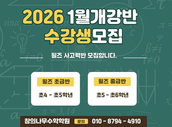 [창의나무] 필즈사고력수학 1월 개강반 모집!