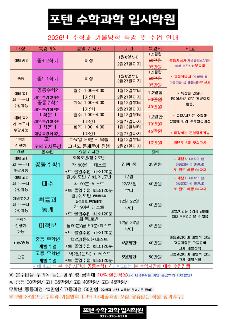 2025년 겨울방학 수학특강 및 학원방학 안내 수학과 포텐수학과학진학지도 입시학원