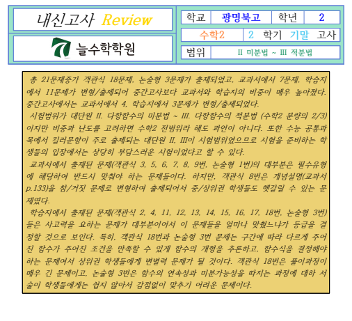 2025년 광북고2 수학2 2학기 기말고사 리뷰
