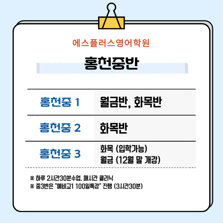 [신봉동 에스플러스영어학원] 홍천중 영어학원 입학안내
