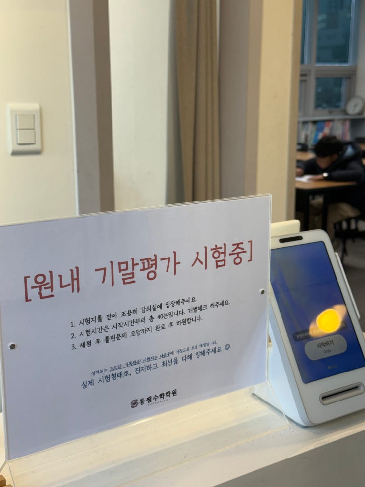 안녕하세요 따뜻한 가르침, 쏭쌤수학학원입니다. 2025년이 마무리 되어 가고 있는 12월 말, 현재 초등학교에서는 기말고사 시험이 한창입니다. 작년까지만 해도 반별 재량으로 기말고사가 이뤄졌다면, 올해 1학기부터는 중고등학생들의 시험형태처럼 날짜를 지정하고 시험이 실시되고 있어요. 이에 대비해 저희 쏭쌤수학학원에서는 실전감각을 익히고, 시간관리 및 실력다지기를 위한 원내기말평가를 매학기 실시하고 있습니다. 저희 학원에서는 문제은행 프로그램을 통해 학생 개개인에 맞춤자료를 제공하고 관리하고 있습니다. 특히, 문제풀이 후 이뤄지는 오답관리 제일 중요한 부분 중 하나죠! 틀린문제를 입력 후 오답문제 + 유사유형/상위....... <img src="https://blogthumb.pstatic.net/MjAyNTEyMTdfMzEg/MDAxNzY1OTc3MjY1MDg2.4GBXFUkeep06s1FSm0QA1O3YNPohr71QWLUkSXBX38sg.cRap_7CKFLIkm3kOTVv4iZi_VA5-Ux2-21Sg9o6USLAg.JPEG/KakaoTalk_20251217_200308320_09.jpg?type=s3" />