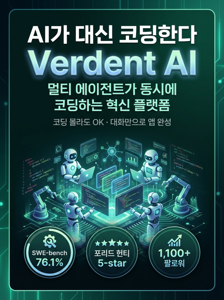 안녕하세요, 케이케이랩입니다! AI 코딩 도구의 세계가 빠르게 진화하고 있습니다. 오늘은 코딩을 모르는 사람도, 문과계 사람도, 개발자도 모두 주목하고 있는 [ Verdent AI ]를 소개합니다! 이 글은 Verdent AI가 정확히 무엇인지, 어떻게 쓰는지, 실제 예시는 어떻게 되는지 스크롤 하실 도료 자세히 설명드립니다! < Verdent AI란? > Verdent AI는 한마디로 AI가 대신 코딩해주는 도구입니다. 그런데 단순한 코드 자동완성이 아니라, 여러 AI 에이전트가 동시에 코딩하는 혁신적인 멀티 에이전트 시스템입니다. Mac, Windows 데스크톱 앱과VS Code, JetBrains 확장으로도 제공되며, 2025년 등장 이후 빠르게 성장 중입니다. Product Hu....... <img src="https://blogthumb.pstatic.net/MjAyNjAyMjhfMjc1/MDAxNzcyMjgzMDI1OTQy.gVv_nD9r_uS6m6boFqwMGvcI8otMaM4ngrogXlNj16Mg.K3ks8spHHAdHr0kdGA0HCRxvGFOxK4Te3jSV9iUKbOwg.PNG/Modern_professional_tech_cover_card_news_design_L-1772283007254.png?type=s3" />