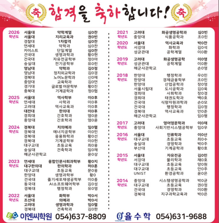 2026 이엔씨학원 합격자 발표! 우리 학생들 정말 수고 많았어요! <img src="https://blogthumb.pstatic.net/MjAyNjAzMDFfMTky/MDAxNzcyMzM5ODQ3MjE4.C_Y7LS70Nofcp8W-y6w9Vg9Jmv1Tf1NE5a4ljHORi9kg.27ZTAxutVcN9OrZPx5tesos2kg48o4Ux6e57KoEhSuog.PNG/KakaoTalk_Photo_2026-03-01-13-36-38_1.png?type=s3" />