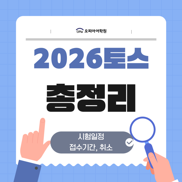 안녕하세요! 짧은 기간 동안 최고의 성과를 만드는 오피아어학원입니다. 취업과 승진을 준비하는 분들에게 토익스피킹 시험은 필수적인 관문이 되었습니다. 이 시험은 응시자의 영어 말하기 능력을 객관적으로 측정해 주기 때문에, 국내 기업은 물론 외국계 기업에서도 주요 영어 능력 지표로 활용되고 있습니다. 오늘은 여러분의 시간과 노력을 아껴줄 토익스피킹 시험에 대한 모든 것을 준비했습니다. 시험의 기본 정보부터 2026년 시험 일정, 신청 방법, 그리고 목표 등급을 달성할 수 있는 공부법 꿀팁까지 오피아어학원과 함께 자세히 알아보겠습니다! 토익스피킹 시험이란? 응시자가 일상생활 및 비즈니스 환경에서 영어를 얼마나 효과적으....... <img src="https://blogthumb.pstatic.net/MjAyNTEyMDZfMjM4/MDAxNzY0OTg4NzIwMDQ2.QOyBXh_zUt4BDdAoSKqk7hhOi9U1_DK3EmKTdmC3FnMg.-e6vqBRBg4NfKc2FgvFhgR-K8h6hkCcAU4L11kvZtNMg.PNG/059.png?type=s3" />