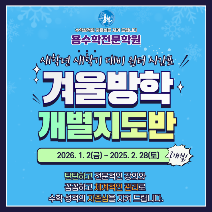 [명일동 수학학원] 2026 겨울방학 개별지도반 시간표 안내