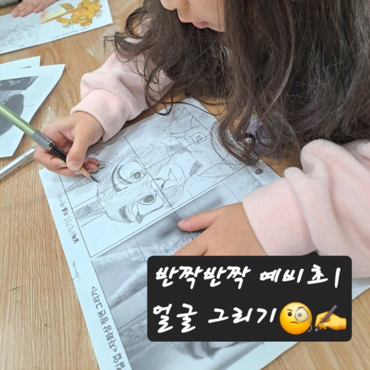 미술로 관찰력, 협응력, 문제해결력, 과제집착력을 키우기 얼굴 그리기 전_ 좋아하는 캐릭터로 레슨받기 얼굴은 조금만 차이가 나도 다른사람으로 느껴져 그리기 어렵다고 느껴질 수도 있어요. 이런 관찰그림은 처음부터 똑같이 그려지지않고 수정해나가는 과정(회복탄력성)이 중요합니다. 그리고 수정하지 않고 선을 긋는데 머뭇거림이 긴 친구들은 하나하나 짚어서 함께 그려나갑니다. 평소 스마일 웃는 얼굴을 그리던 친구들 이번 수업으로 얼굴의 구조에 대해 배우고 탐구해보고 내 손에서 간단한 얼굴이 아닌 더 사실적이고 회화적인 느낌의 새로운 얼굴을 그려보는 경험을 하게 되었습니다. 실패와 시도 끝에 자신의 얼굴과 닮은 그림을 보....... <img src="https://blogthumb.pstatic.net/MjAyNjAxMjhfNTQg/MDAxNzY5NTg1NDM2MTM4.P9TPoEdPZ8DKhgweHEBAJNdYvTsmTaX_ejxYFq96K5Ag.YN6i6bzwHyQCsBvufIZrmL8KXkrHboANsIijbtf3oyAg.JPEG/900%A3%DF1769567177822.jpg?type=s3" />