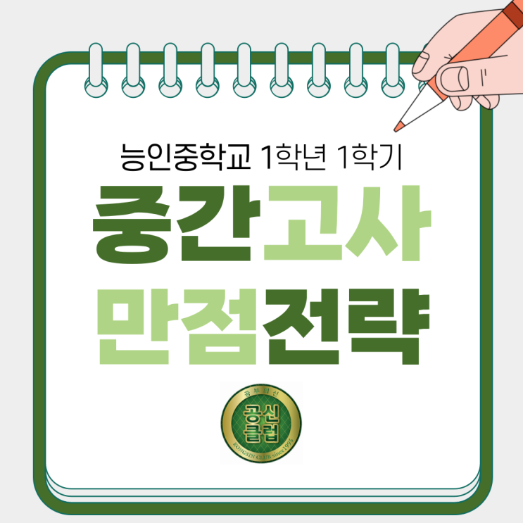 2025학년도 능인중 1학년 1학기 중간고사, 공신학원의 영어 만점대비 노하우! 안녕하세요, 최상위 영어학습의 새로운 패러다임을 만드는 공신클럽입니다. 오늘은 능인중학교 1학년 1학기 중간고사 내신 분석과 만점 대비 전략을 함께 알아보겠습니다. Ⅰ. 중간고사 기본 정보 1) 시험 범위: ① 교과서: 1과) be동사, 일반동사 2과) 현재진행형, 조동사 can, will ② 외부지문 2) 문항 구성: ⁃ 선택형: 18문항, 배점 3-4점 ⁃ 서술형: 5문항, 배점 6-8점 3) 출제 비율: 교과서 83%, 범위 밖 17% 4) 주요 출제 유형 TOP 3: 내용 일치/파악 [독해] 5문항 > <조건> 영작[서술형]: 3문항 > 문법[어법] 3문항 능인중학교 내신의 특징은 높....... <img src="https://blogthumb.pstatic.net/MjAyNjAyMTBfMjkw/MDAxNzcwNzIxNDA4OTYw.WmAcHzLHknUNelnpjtKVK0v0yb5-MquXSwE77XV6TlUg.OJu4145_Bcc2D78-YmNSnYqQQ6zS-v3TUWP3pVCnDjIg.PNG/%C7%A5%C1%F6.png?type=s3" />