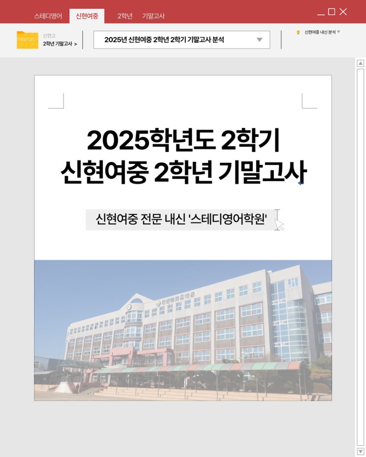 [신현여중 영어학원] 2025년 신현여중 2학년 2학기 기말고사 총평