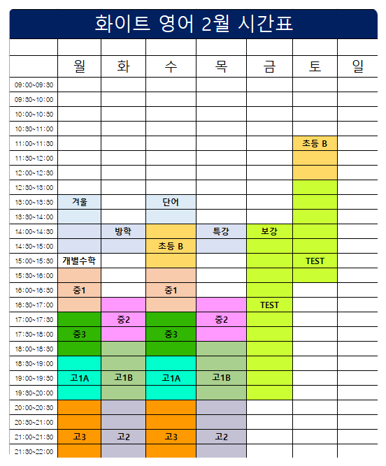 [보람동영어]2월의 시간표