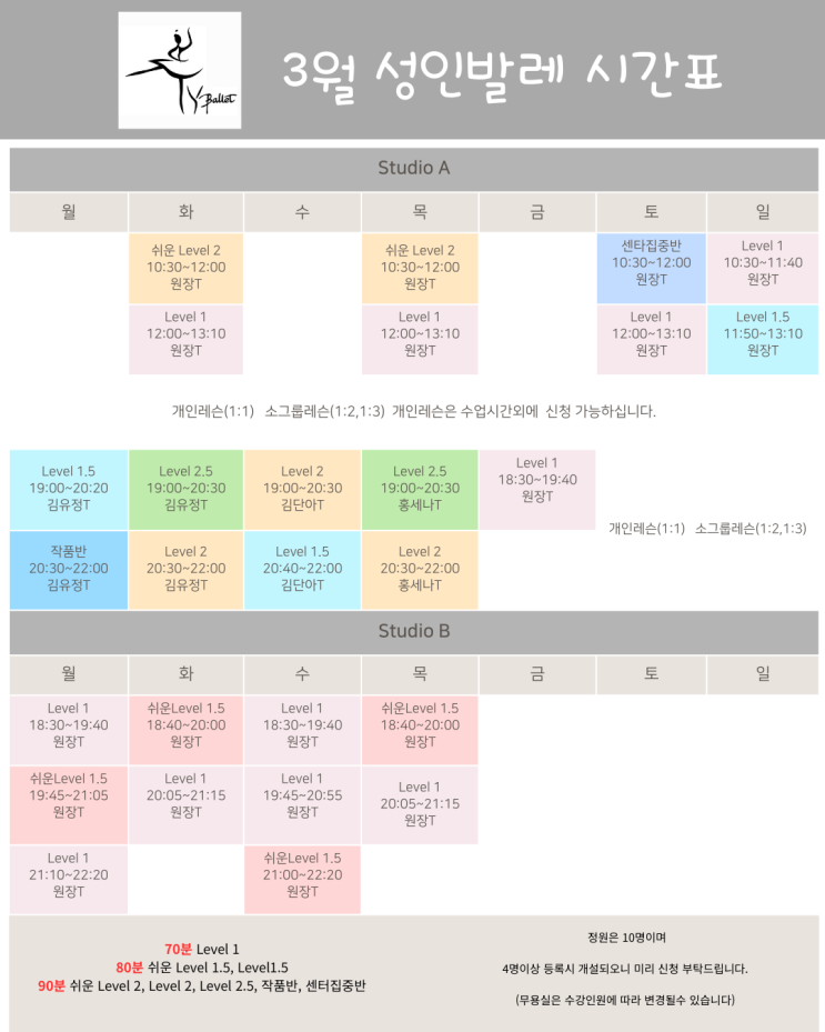 26년 3월 성인발레 시간표/스케쥴/수강료