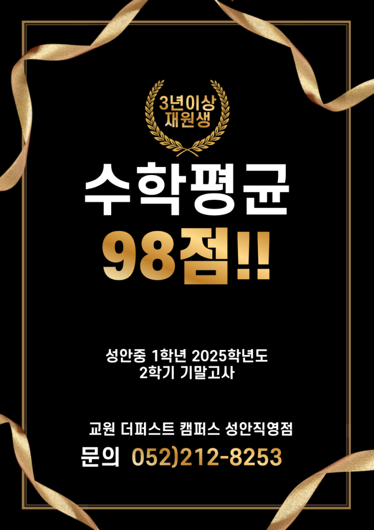 성안중 기말고사 내신 대비 성공 사례! 2025학년도 2학기 기말고사 100점 다수 배출한 학원은? 울산 성안동 성안초 백양초 성안중 영어 수학 독서 논술 전과목 학원